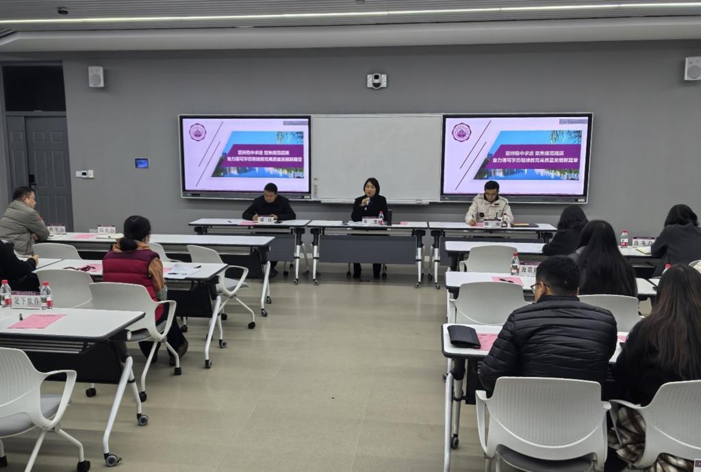 12月26日下午,继续教育学院在博学楼F118智慧教室召开学历继续教育规范化建设会暨“十五五”规划调研会,会议由学院副院长陈刚主持,全院教职工和我校学历继续教育各校外教学点、助学点相关负责人参会。会上,学院党总支书记、院长张莹传达了教育部及市教委关于学历继续教育的最新政策精神,通报了近期学校改革发展取得的重要进展,并就进一步规范做好学历继续教育提出三点要求,一是深化认识,凝聚共识,深刻把握规范发展的时...