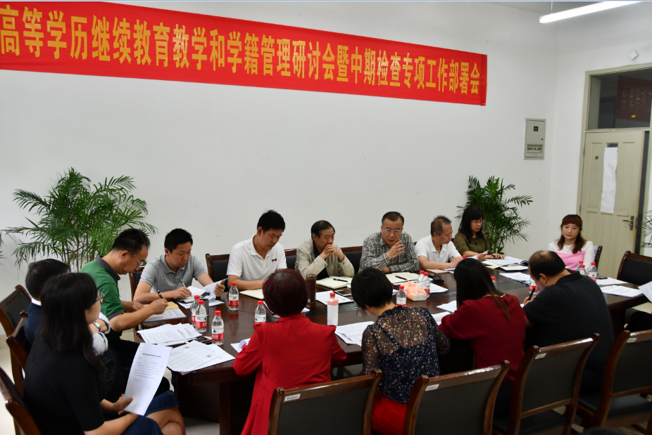 【供稿/教务科 王敏】5月30日下午,2018年高等学历继续教育教学和学籍管理研讨暨中期检查专项工作部署会在博学楼F121会议室召开。教学站(点)分管领导和相关管理人员、学院教学科和学生科全体人员参加了会议。会议要求,牢固树立办好继续教育的情怀,坚持共商共管共建,扎实推进继续教育合作办学规范持续健康发展。会议由常务副院长李军良主持。