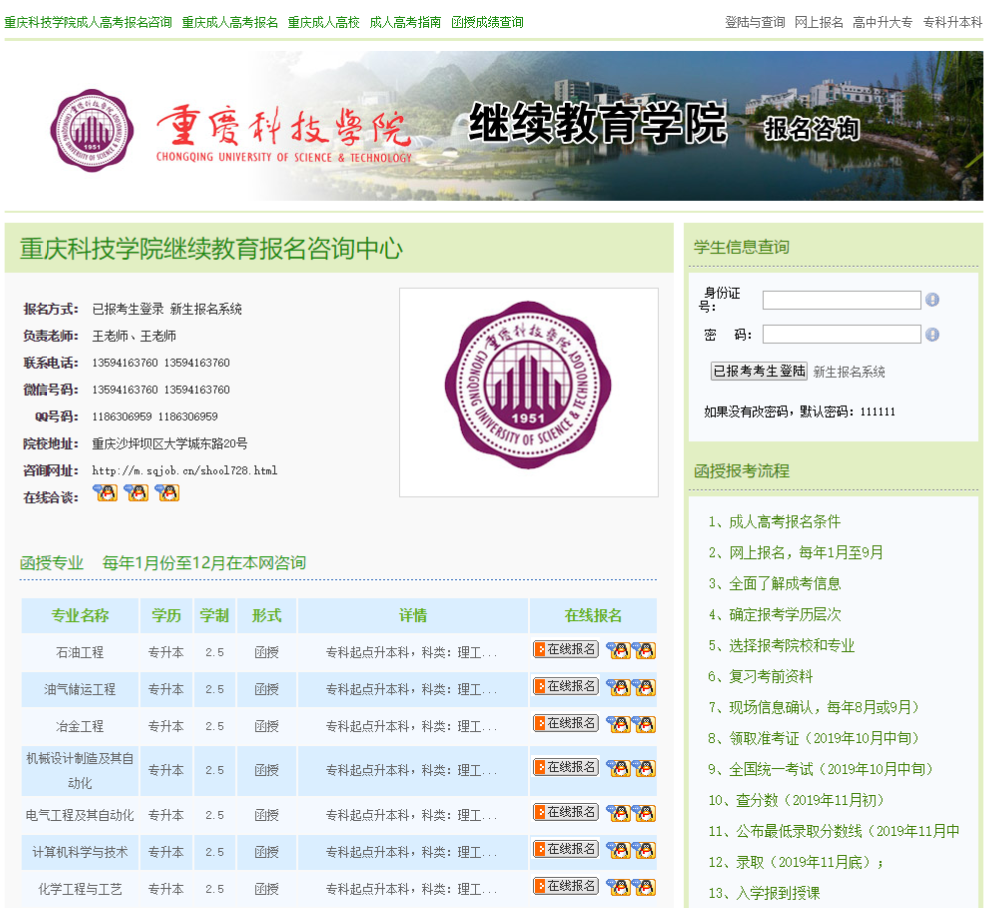 1.重庆科技学院官网http://www.cqust.edu.cn/教育教学→继续教育;