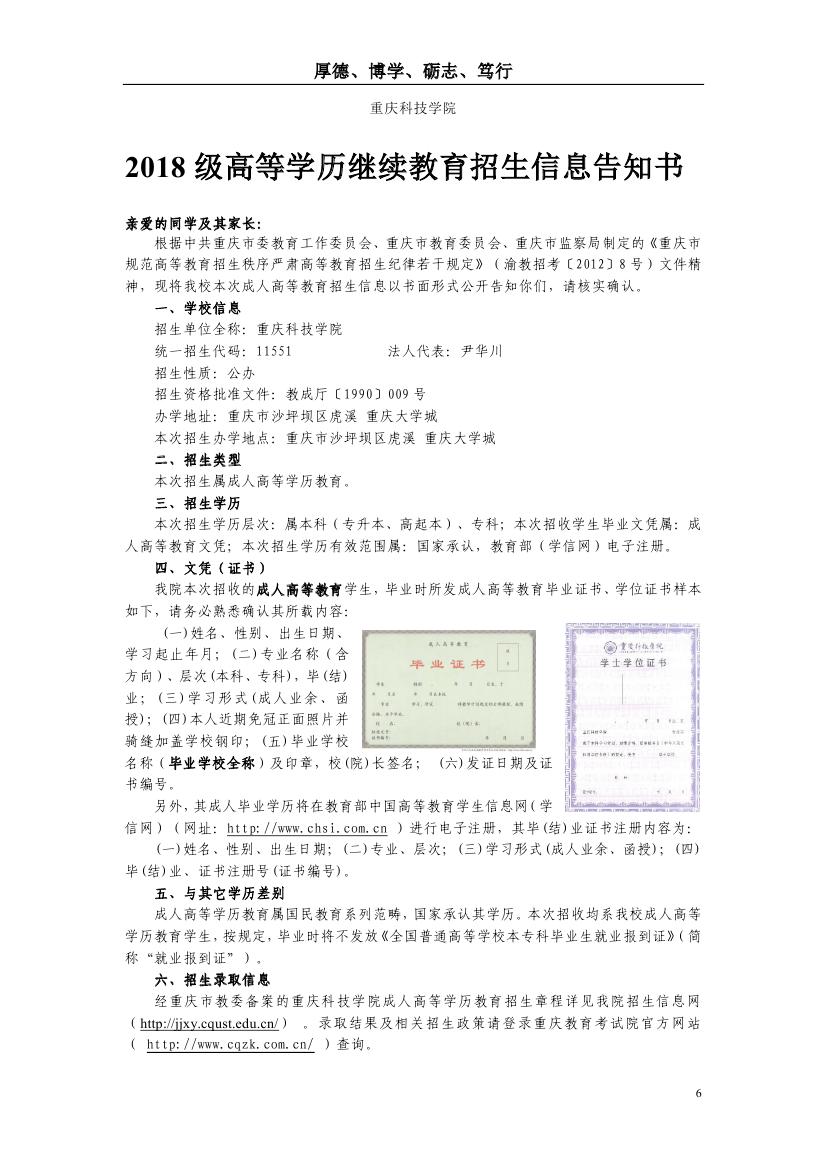 2017年重庆科技学院高等学历继续教育招生简章(备案).doc