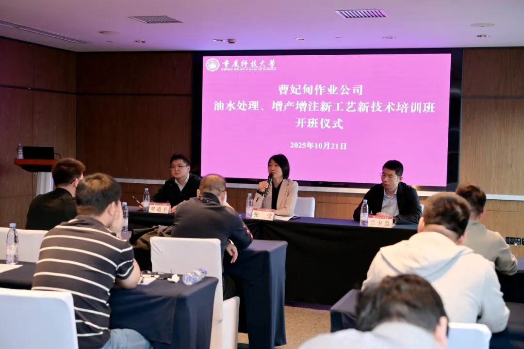 2025年10月21日,由中海石油(中国)有限公司天津分公司曹妃甸作业公司主办、重庆科技大学继续教育学院承办的油水处理、增产增注新工艺新技术培训班举行开班仪式。中海石油(中国)有限公司天津分公司曹妃甸作业公司采油工艺主任工程师兰夕堂,重庆科技大学继续教育学院党总支书记兼院长张莹出席开班仪式。