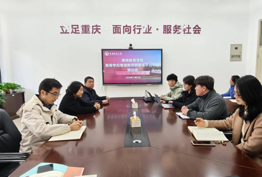 2025年11月27日下午,在F121会议室召开了高等学历继续教育数智化平台功能培训会。学院领导,全院招生录取、学生管理、教学管理、财务管理、班主任、系统管理等岗位人员和平台建设方代表北京网梯科技有限公司相关人员参加了本次培训会。