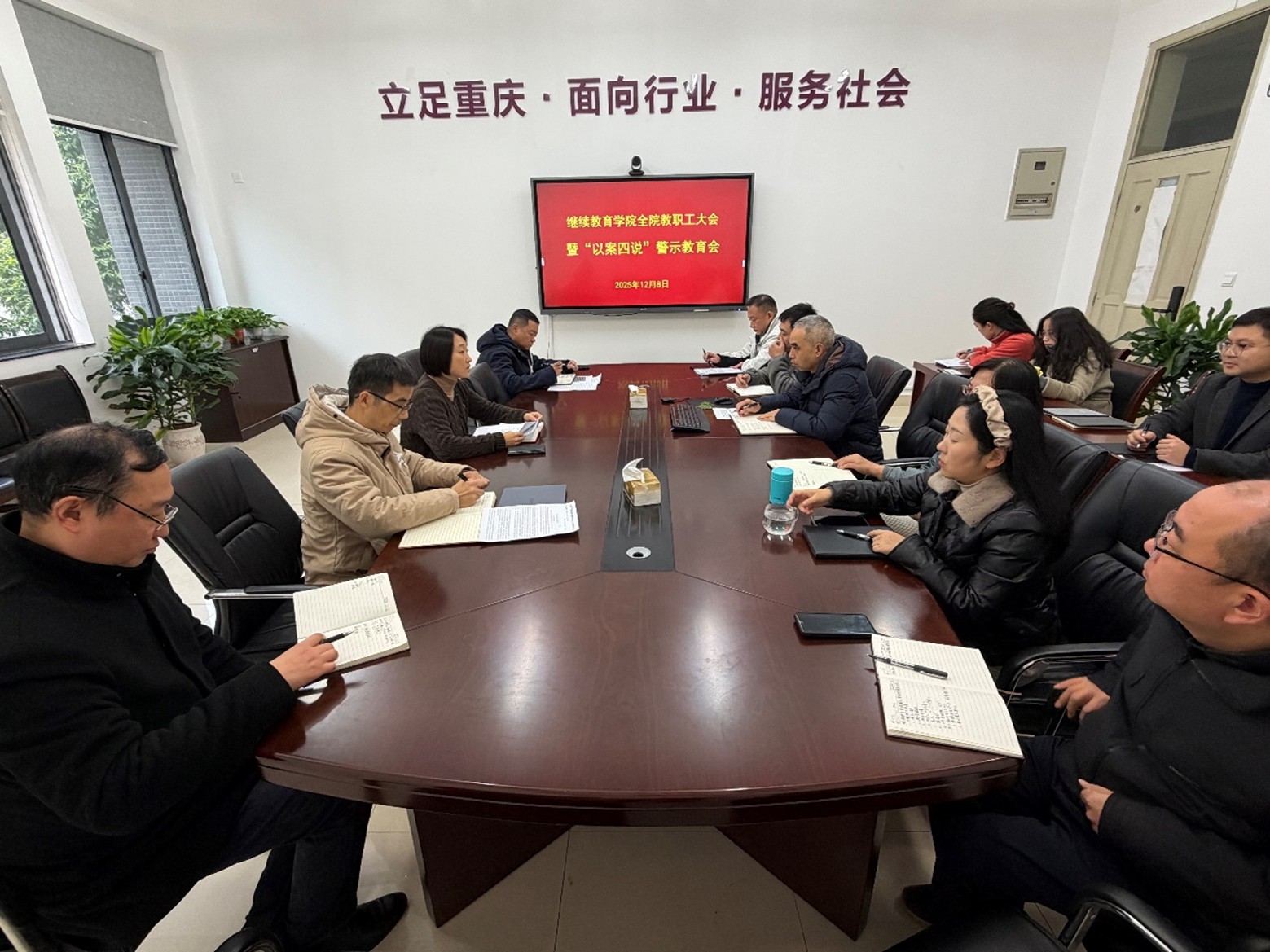 为深入学习贯彻习近平总书记关于加强党的作风建设的重要论述和中央八项规定及其实施细则精神,持续提升全院教职工廉洁自律意识,切实加强学院党风廉政建设工作。12月8日下午,继续教育学院党总支在博学楼F121会议室召开“以案四说”警示教育会,全体教职工参加会议,会议由党总支书记、院长张莹主持。