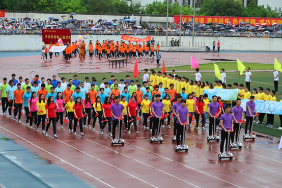 为了更好地在校运会上展现继续教育学院学子的精神风貌,学院在校运会前进行了精心部署。为使运动员方阵出场有特色,师生群策群力,提出了以代表当今科技和时尚的平衡车为先导,整齐划一朝气纷呈的运动员方队紧随的方案。为达到平衡车的行进速度与方阵速度一致,运动员们利用休息时间进行了艰苦的训练,取得了满意的效果。